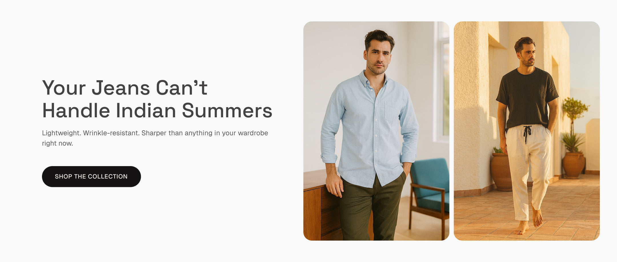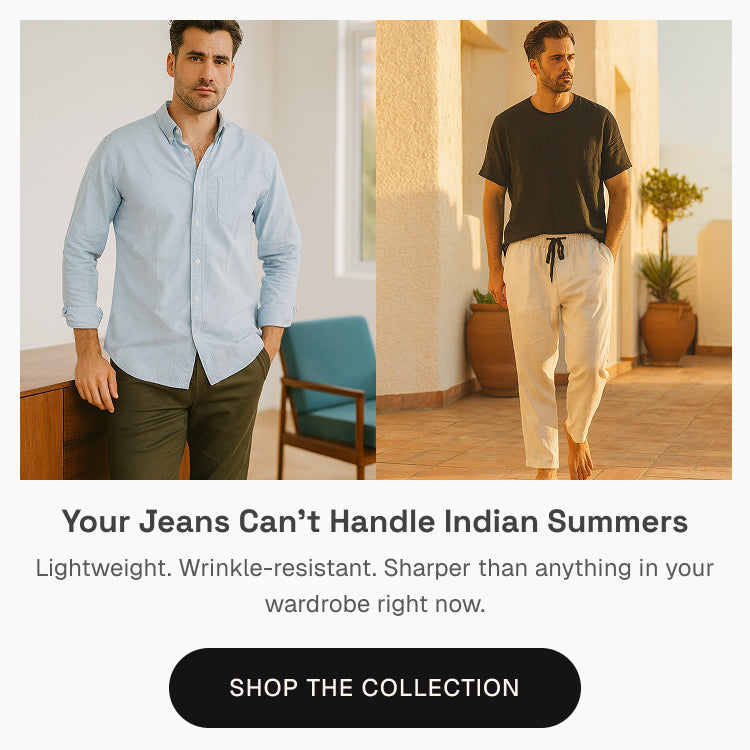 Linen-blend quality at ₹1,599–₹2,299. Not ₹4,000+. Because looking good in India shouldn't cost a fortune.
