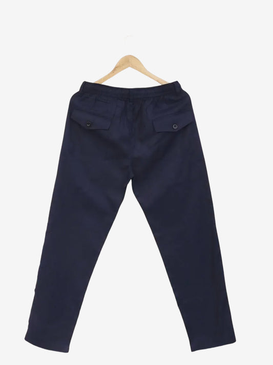 Men Navy Blue Cotton Linen Pant